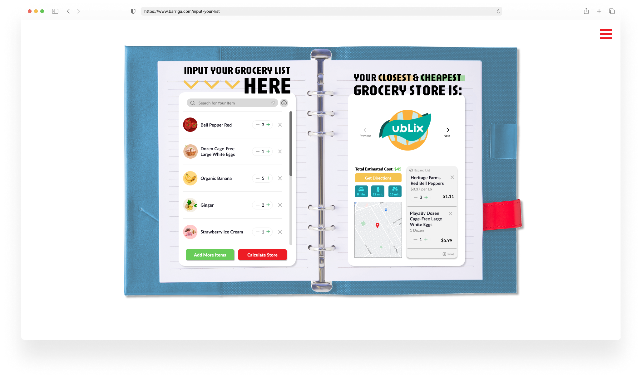 Barriga is a website platform designed to address food insecurity. Users can input their grocery list, and the Barriga AI database will identify the nearest and most affordable grocery store where they can find all items at once. By eliminating the need to visit multiple stores for bargains, Barriga aims to reduce decision fatigue and simplify grocery shopping, making it more convenient and cost-effective.