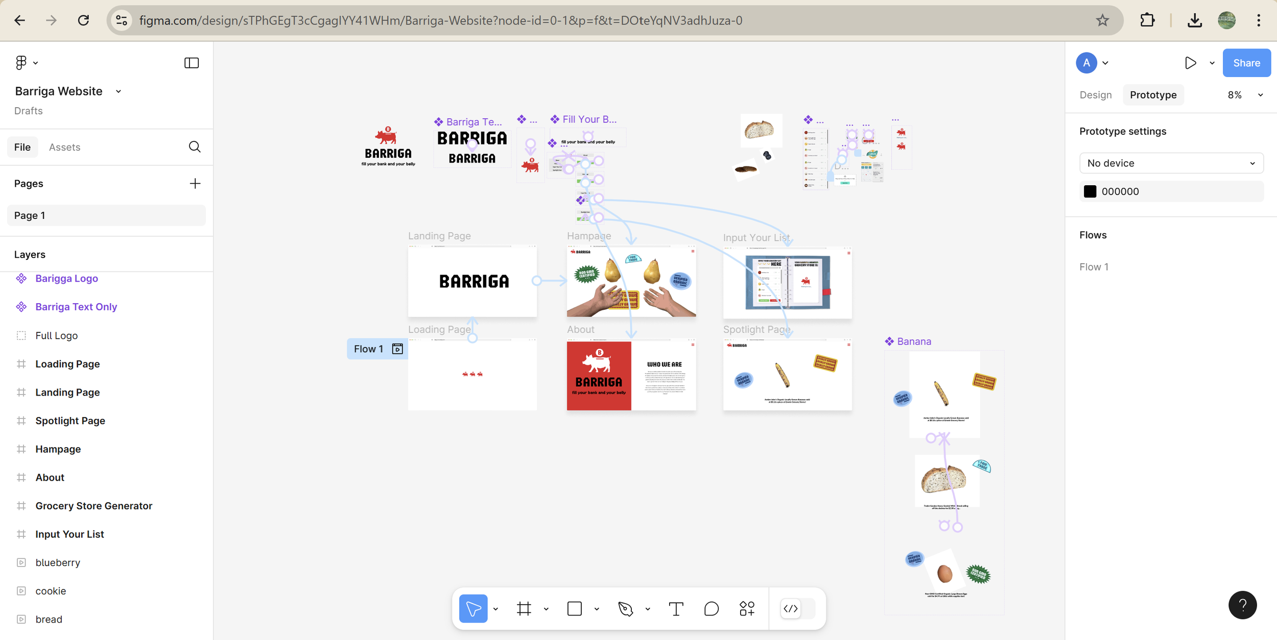 I then decided that I wanted to begin designing in a website format. I designed and wireframed the website in Figma, and attempted to add in an Anima plugin to make the 3D fruit interactive (move with your mouse, fall around the page, etc…). The Anima plugin failed as I was not sure how to implement it into the usable prototype in Figma since the plugin only worked in Anima.