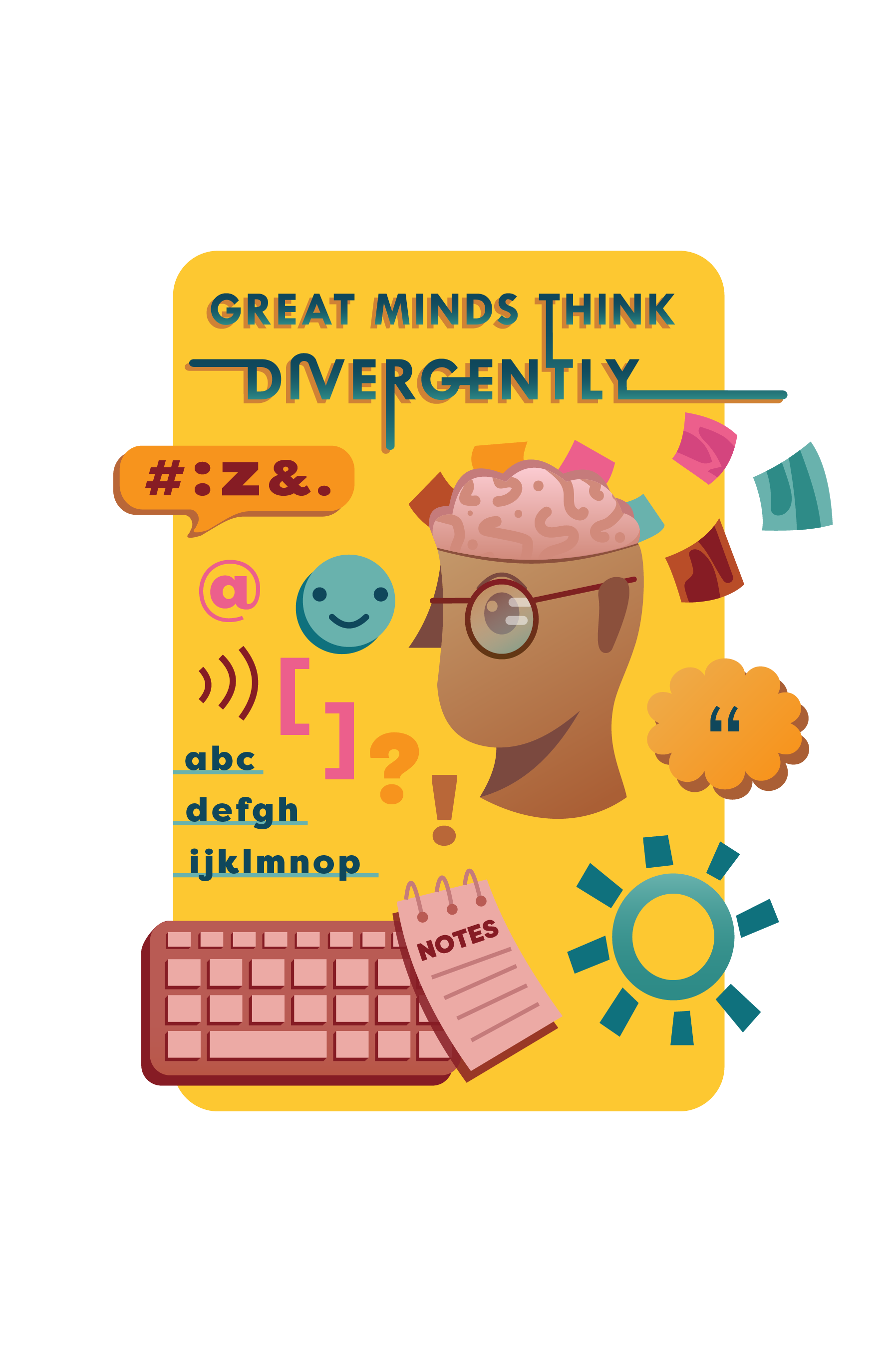 Neurodivergent individuals tend to face many difficulties within their lifetime because of society's lack of understanding. Through the Great Minds Think Divergently t-shirt line, I wish to bring awareness to neurodivergent disabilities so that the community becomes more widely accepted and accommodated.